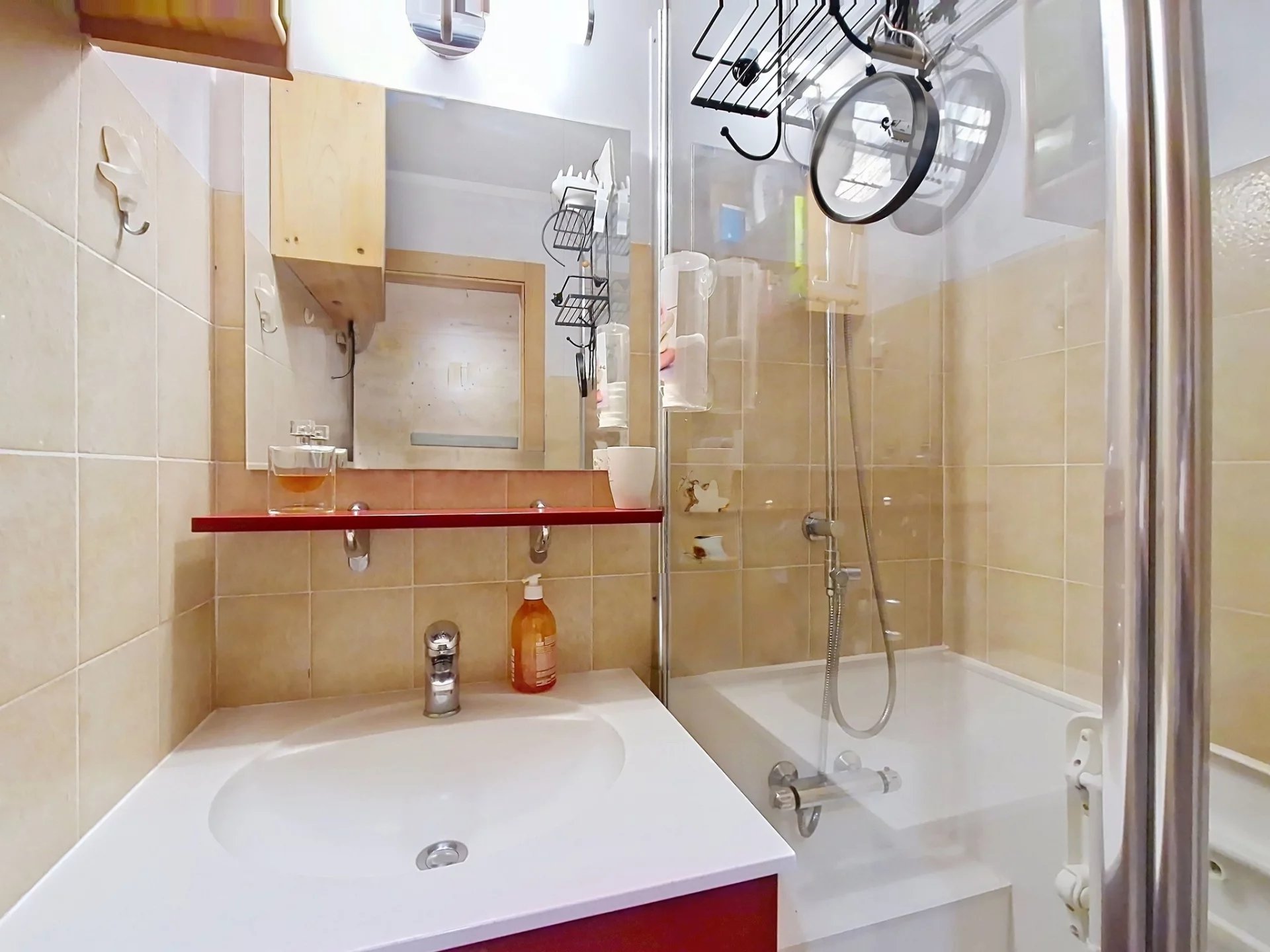 It is composed of : hallway, shower-room, separat WC, sleeping area with double bed, living-room with equipped kitchen area and South/East facing terrace.