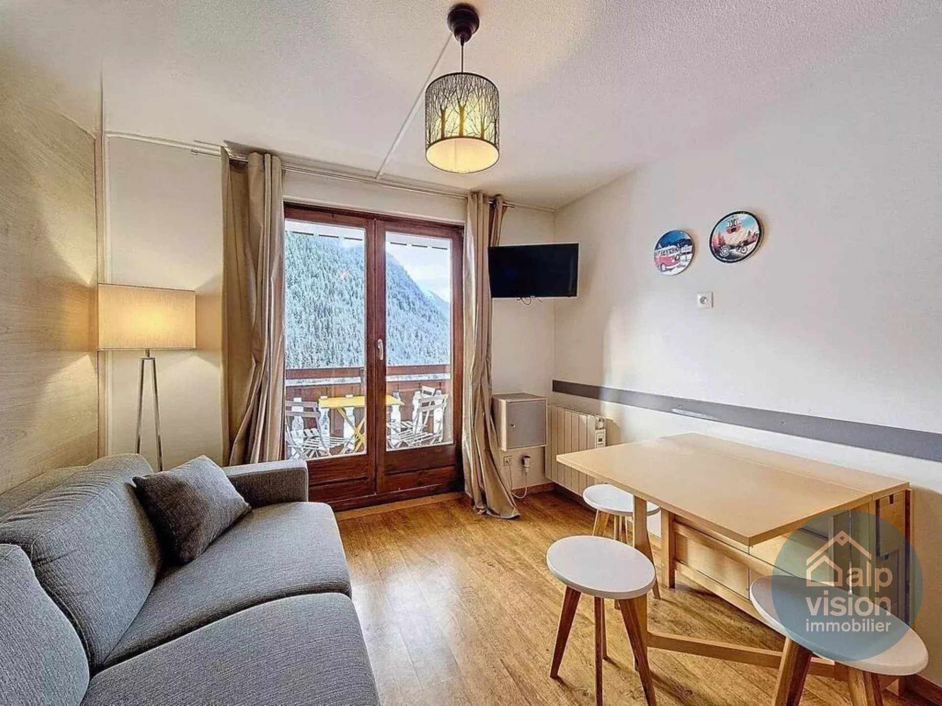 On the ground floor of a co-owned property without lift (97 lots in 3 buildings) 300 m from the Chatel centre, 22 m² flat.