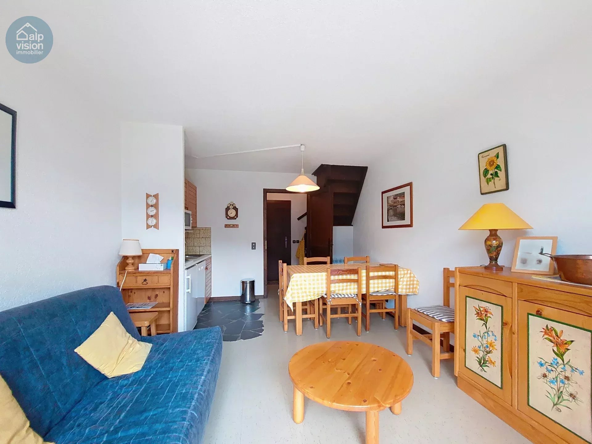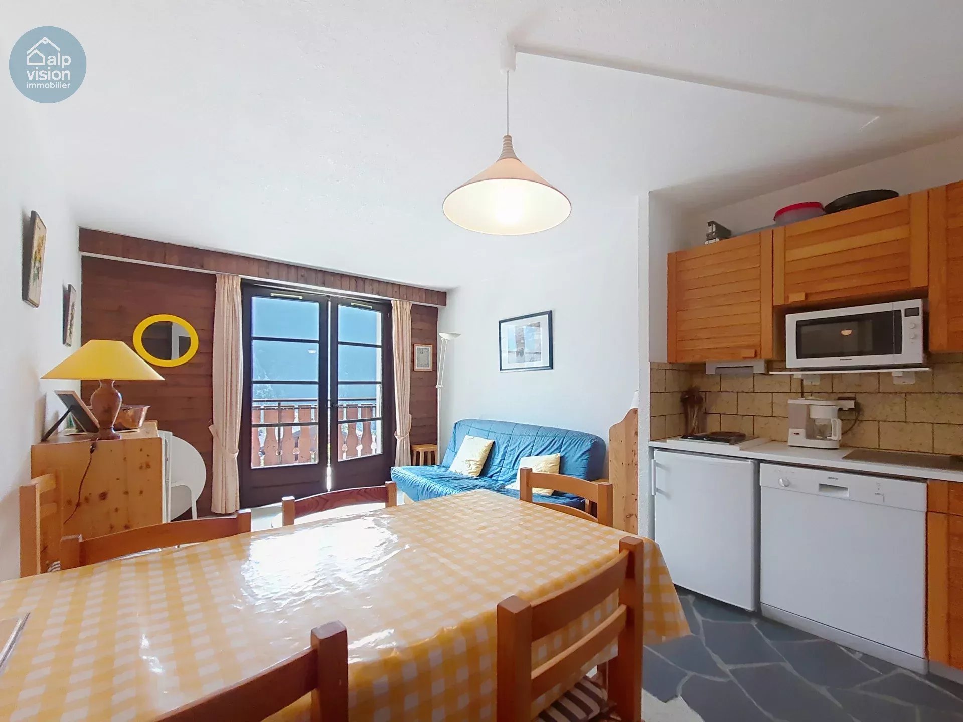 It is sold with furniture, a couvert parking space and a ski locker.