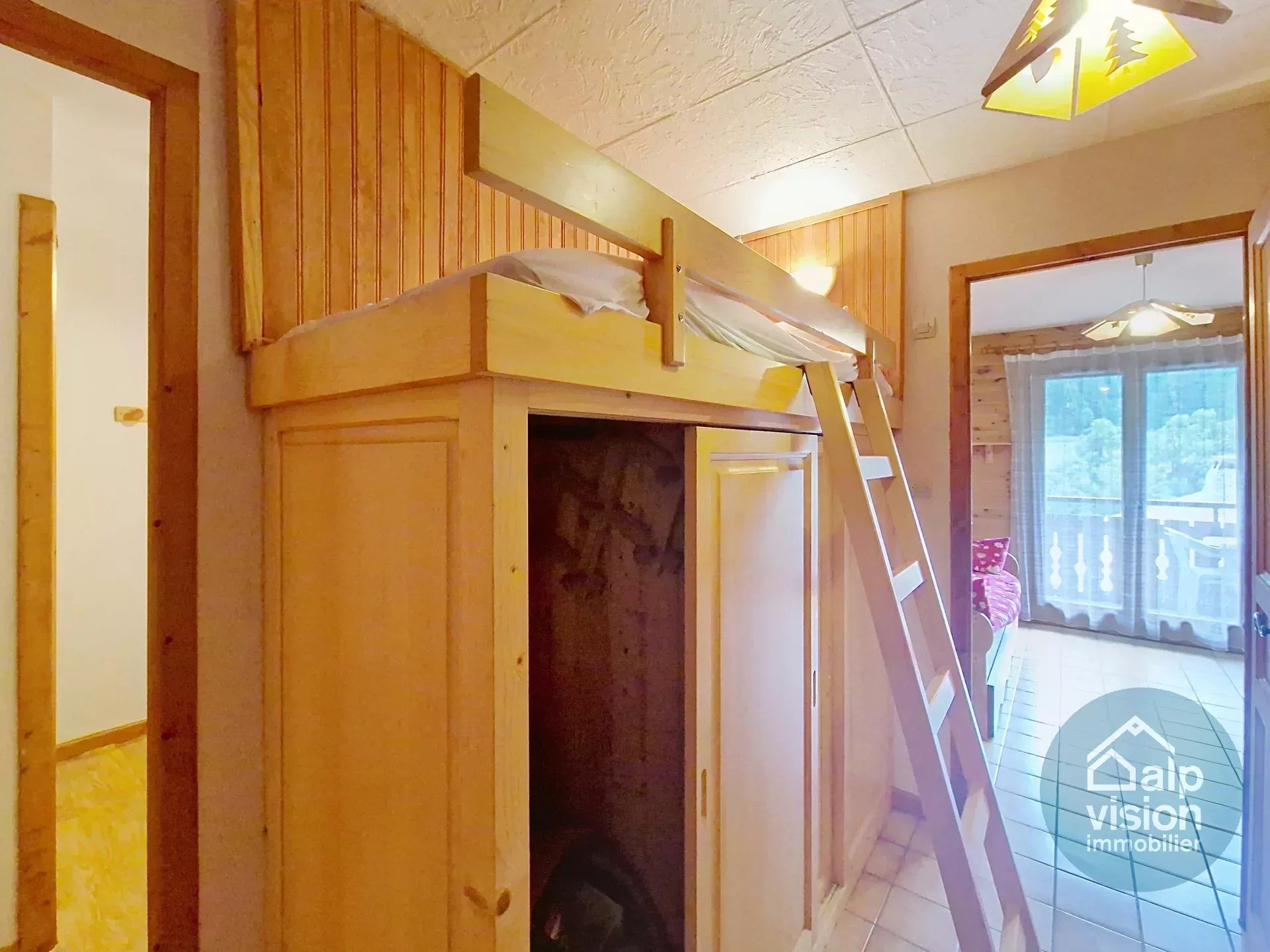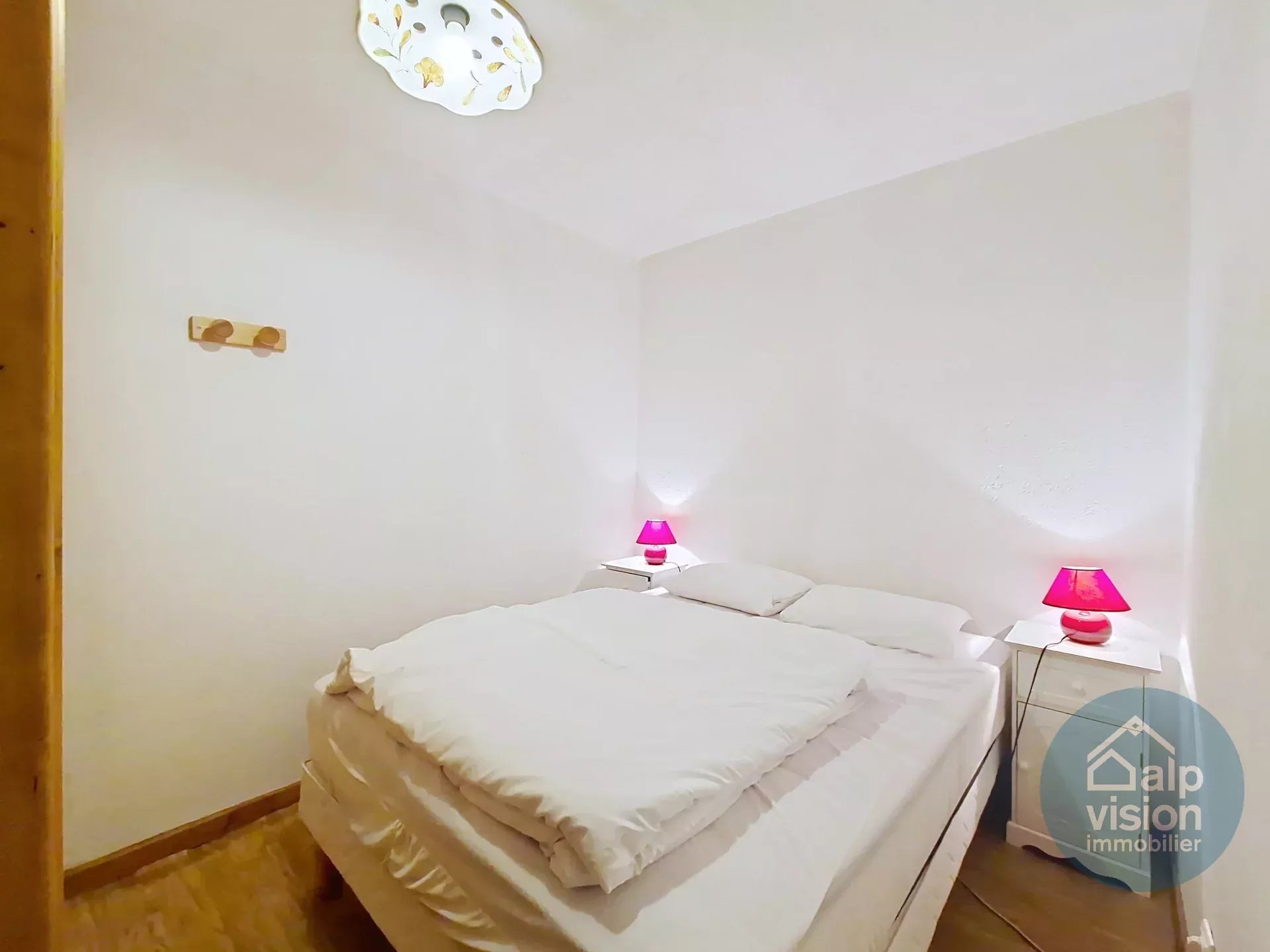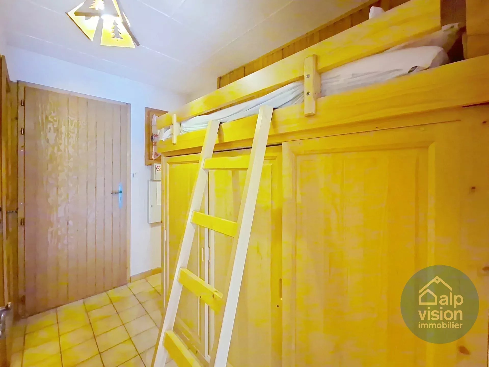 On the 1st floor of a co-owned property without lift (30 lots in 2 buildings) 300 m from the Linga ski lifts, 26 m² flat.