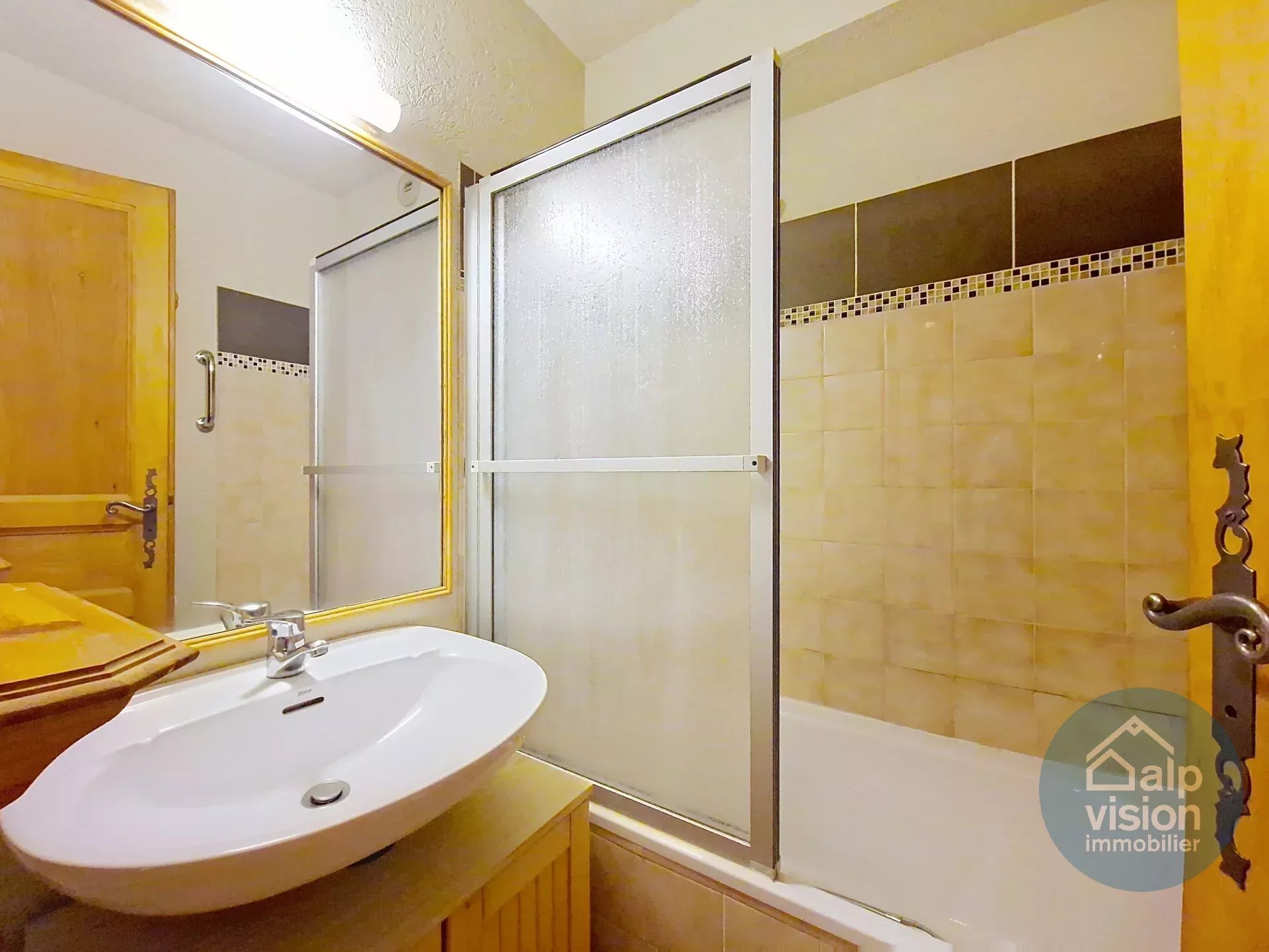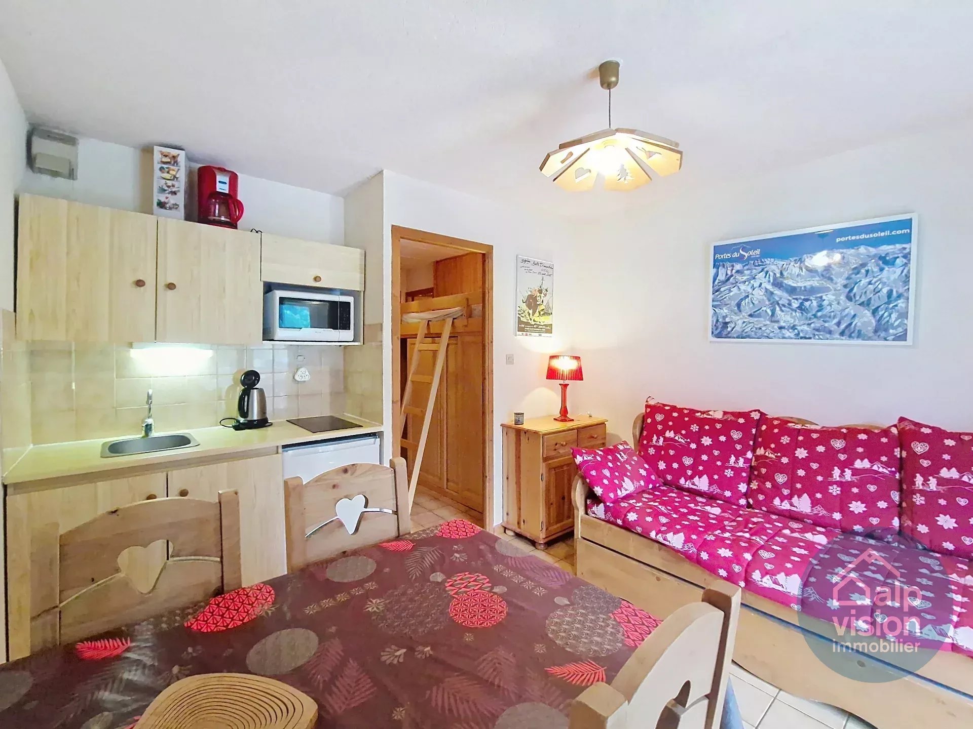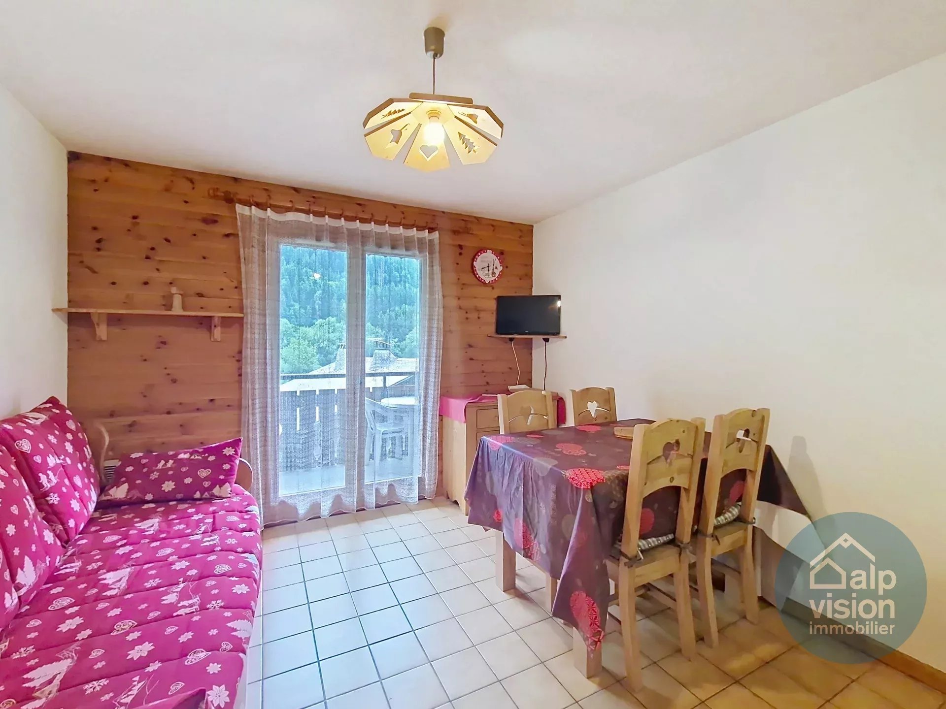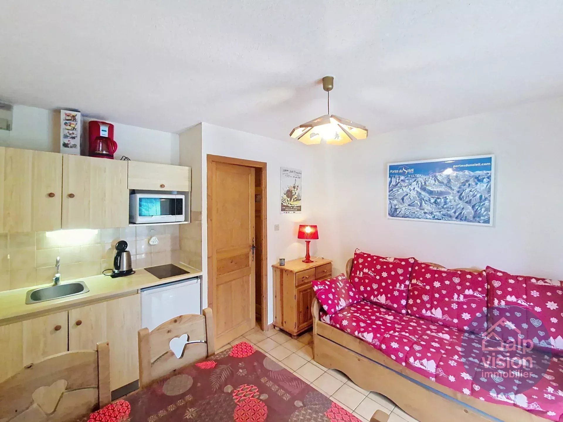 On the 1st floor of a co-owned property without lift (30 lots in 2 buildings) 300 m from the Linga ski lifts, 26 m² flat.