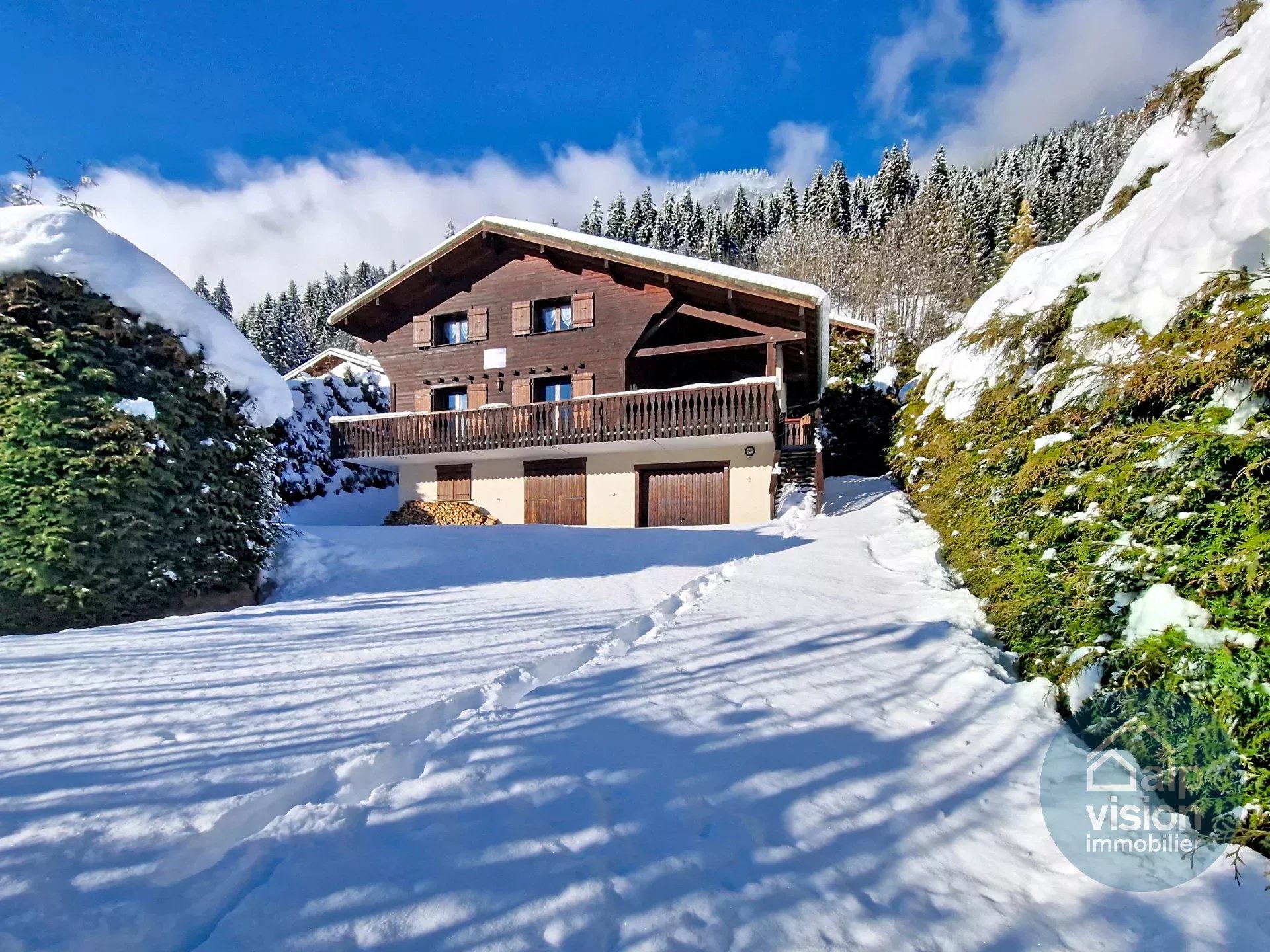 This well maintained detached chalet, located in the French Alps, offers stunning views toward the ske slopes of La Chapelle d'Abondance.