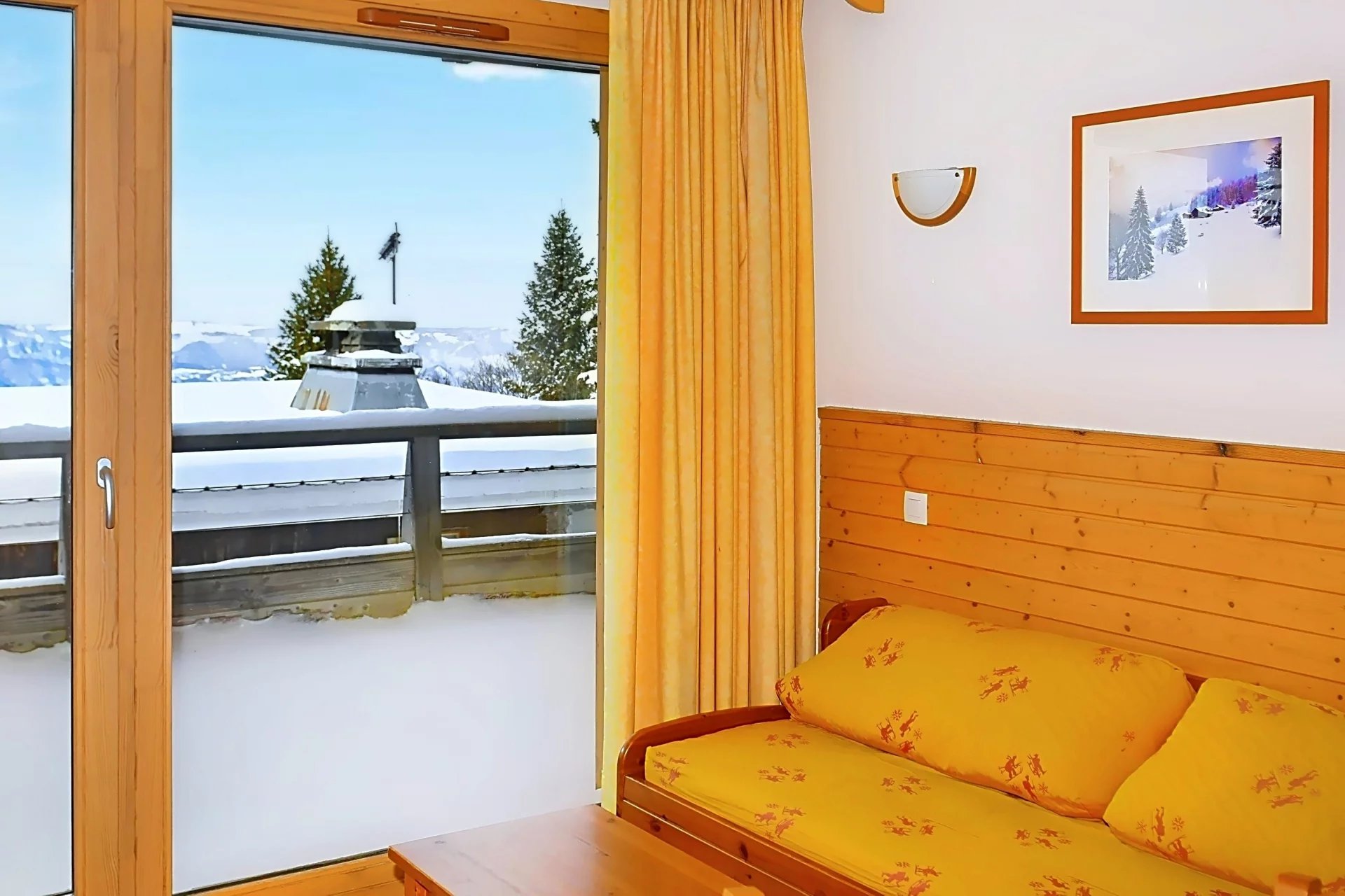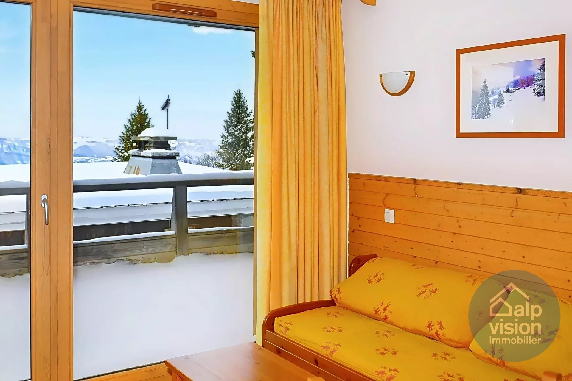 À vendre à Chamrousse, bel appartement de 44 m² avec terrasse de 11 m² exposée Sud- Ouest, offrant une vue panoramique sur les montagnes du Vercors.