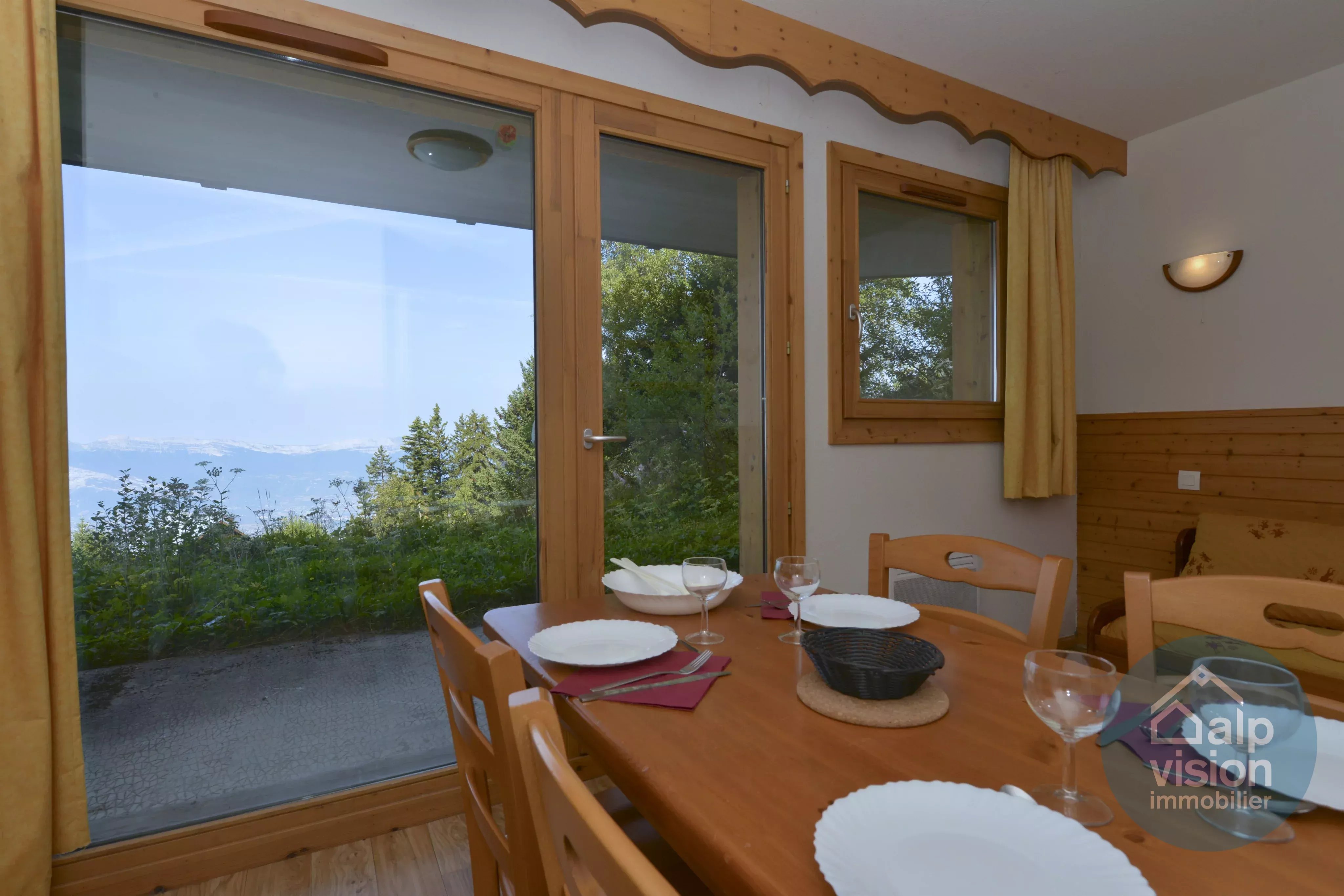 À vendre à Chamrousse, bel appartement de 31 m² avec terrasse de 9 m² exposée Sud- Ouest, offrant une vue panoramique sur les montagnes du Vercors.