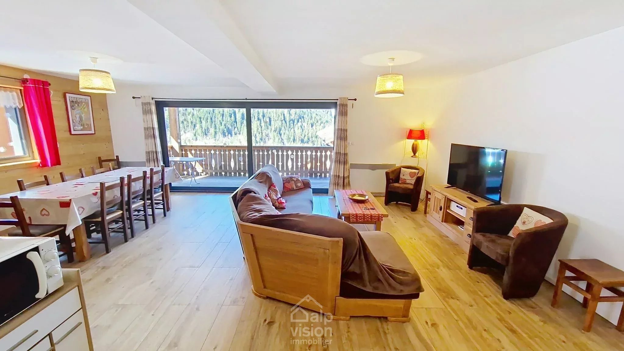 Au centre de Châtel, station des Portes du Soleil, à 5 minutes à pieds du télécabine de Super Châtel, ce 4 pièces se situe au 1er niveau d'une résidence récente.