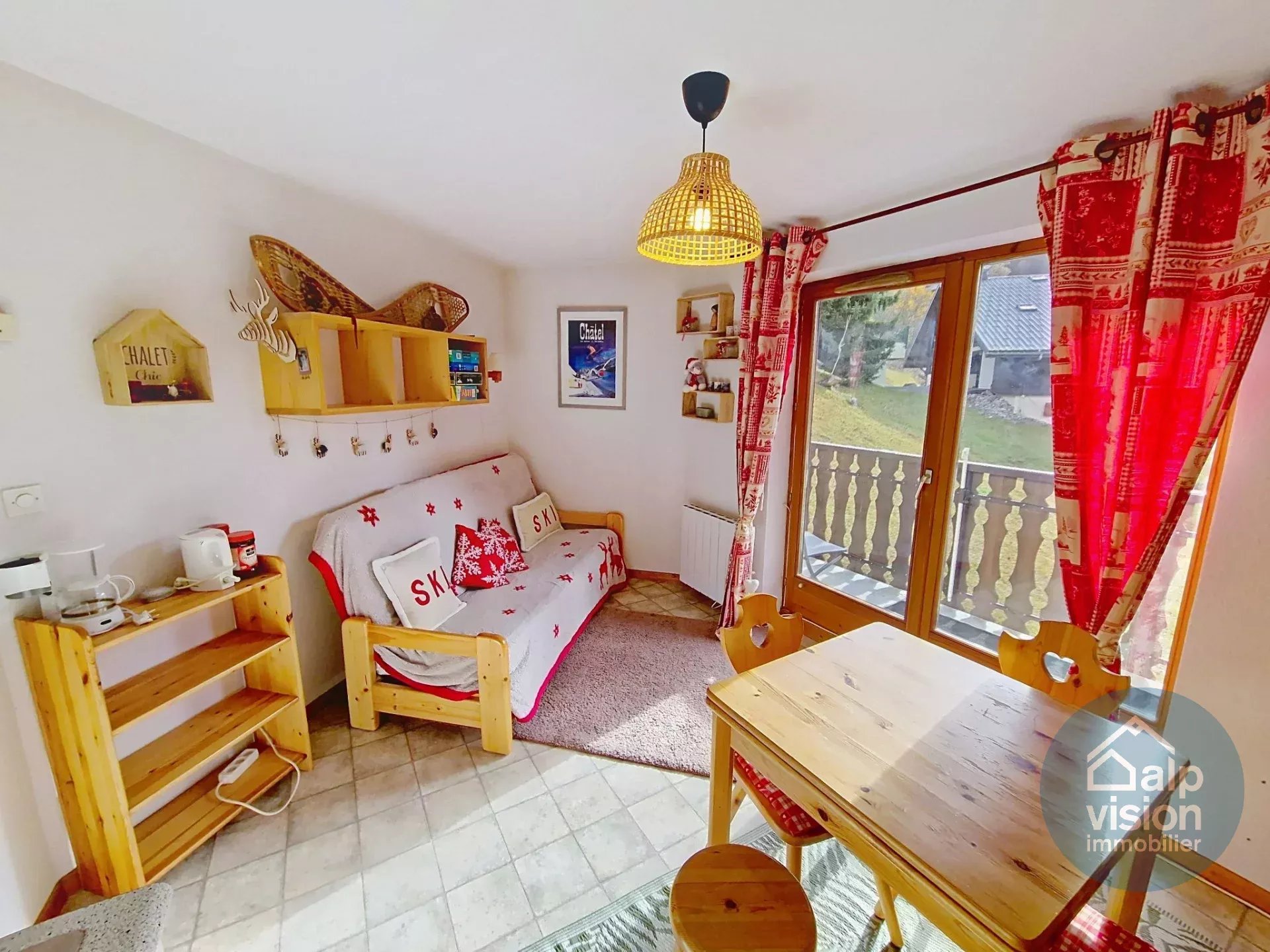 Au 3ème niveau d'une copropriété avec ascenseur (52 lots répartis sur 2 bâtiments) à 500 m des remontées mécaniques du Linga à Chatel, Portes du Soleil, appartement de 19,76 m².