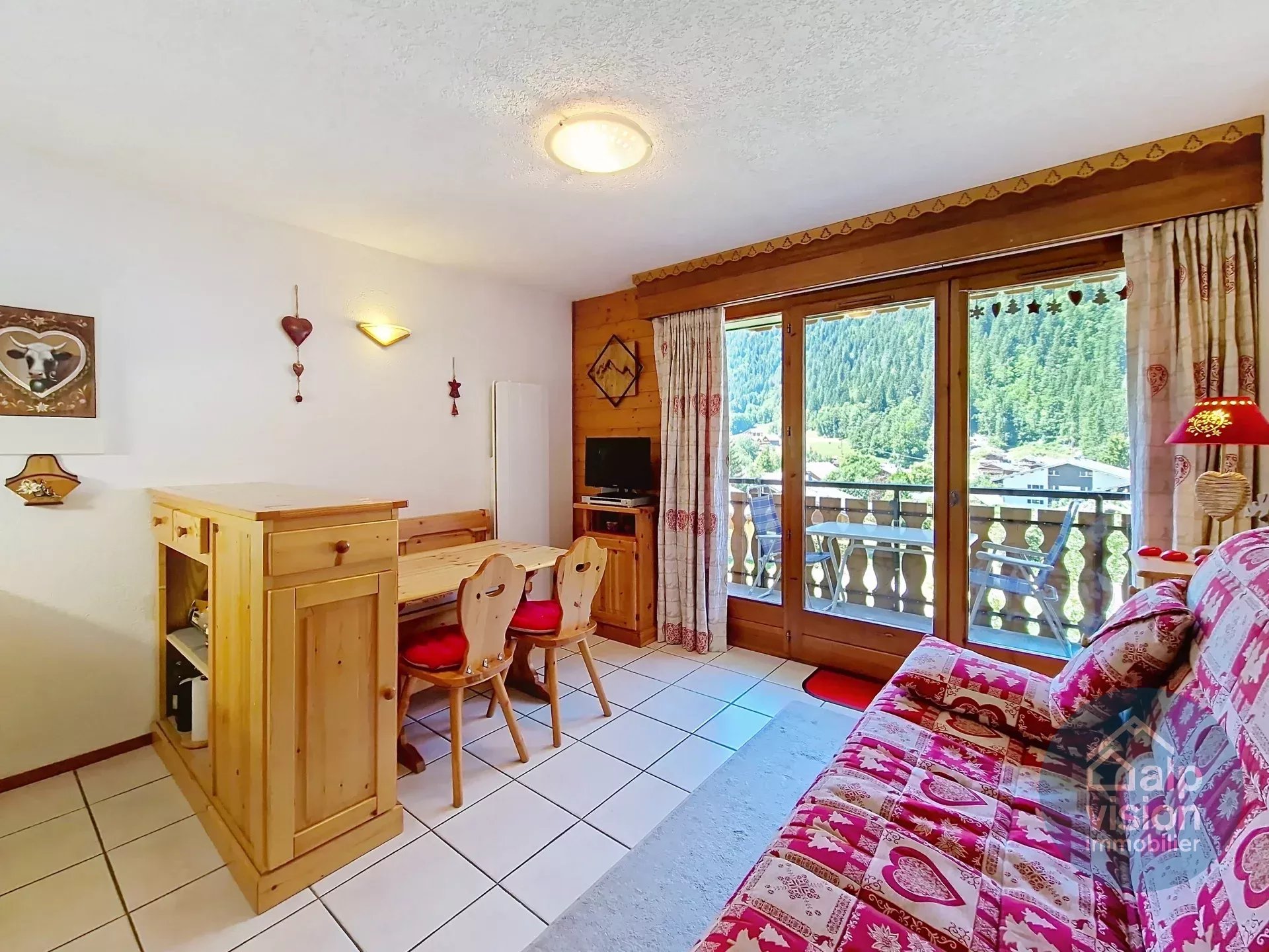 Appartement de 21 m² au 1er étage d'une résidence en copropriété (42 lots répartis sur 2 bâtiments), situé entre le Centre de Châtel et les remontées mécaniques du Linga pour faire le tour des Portes du Soleil, dans les Alpes françaises.