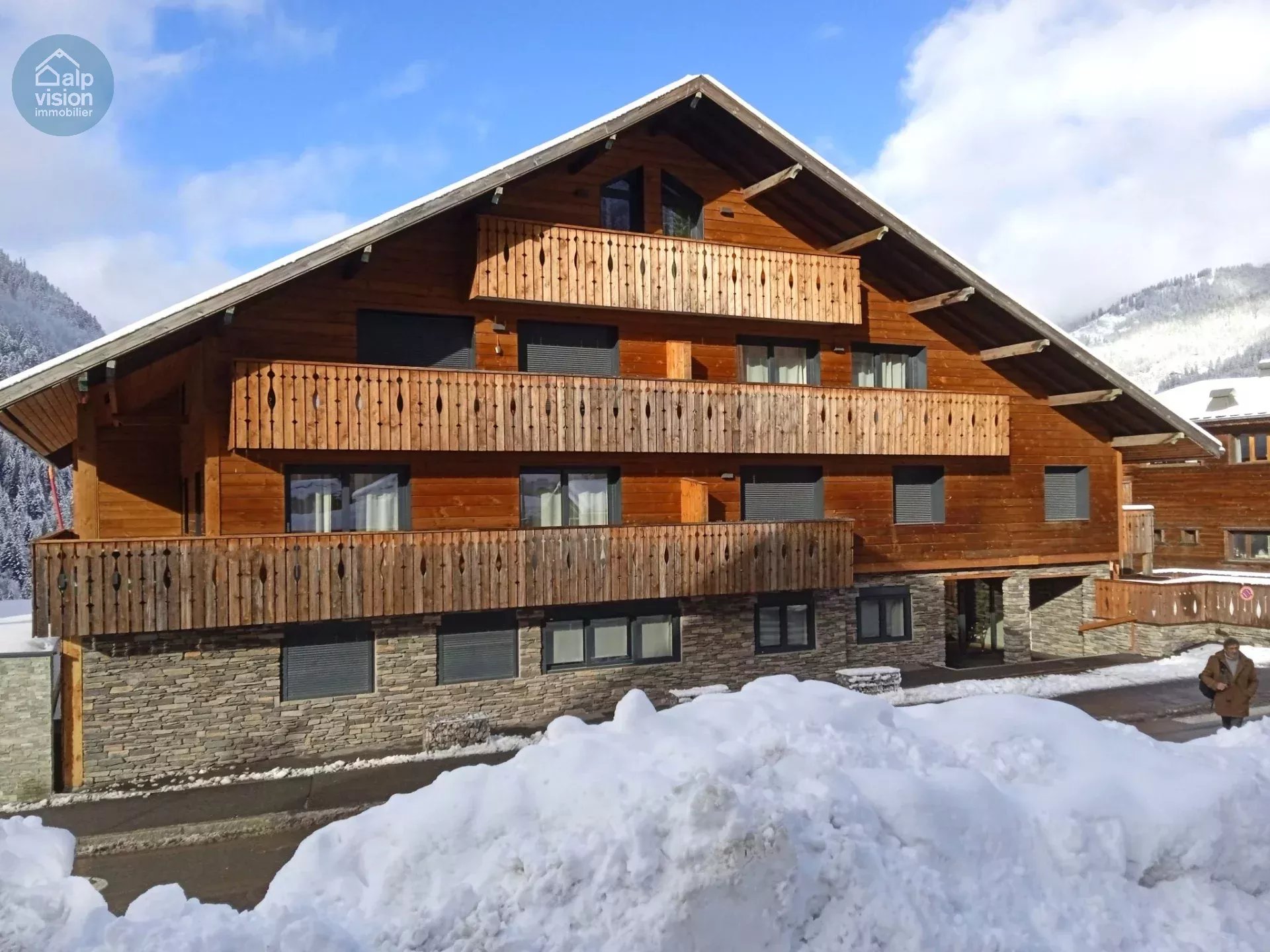 Au centre de Châtel, station des Portes du Soleil, à 5 minutes à pieds du télécabine de Super Châtel, ce 4 pièces se situe au 2ème et dernier étage d'une résidence récente.