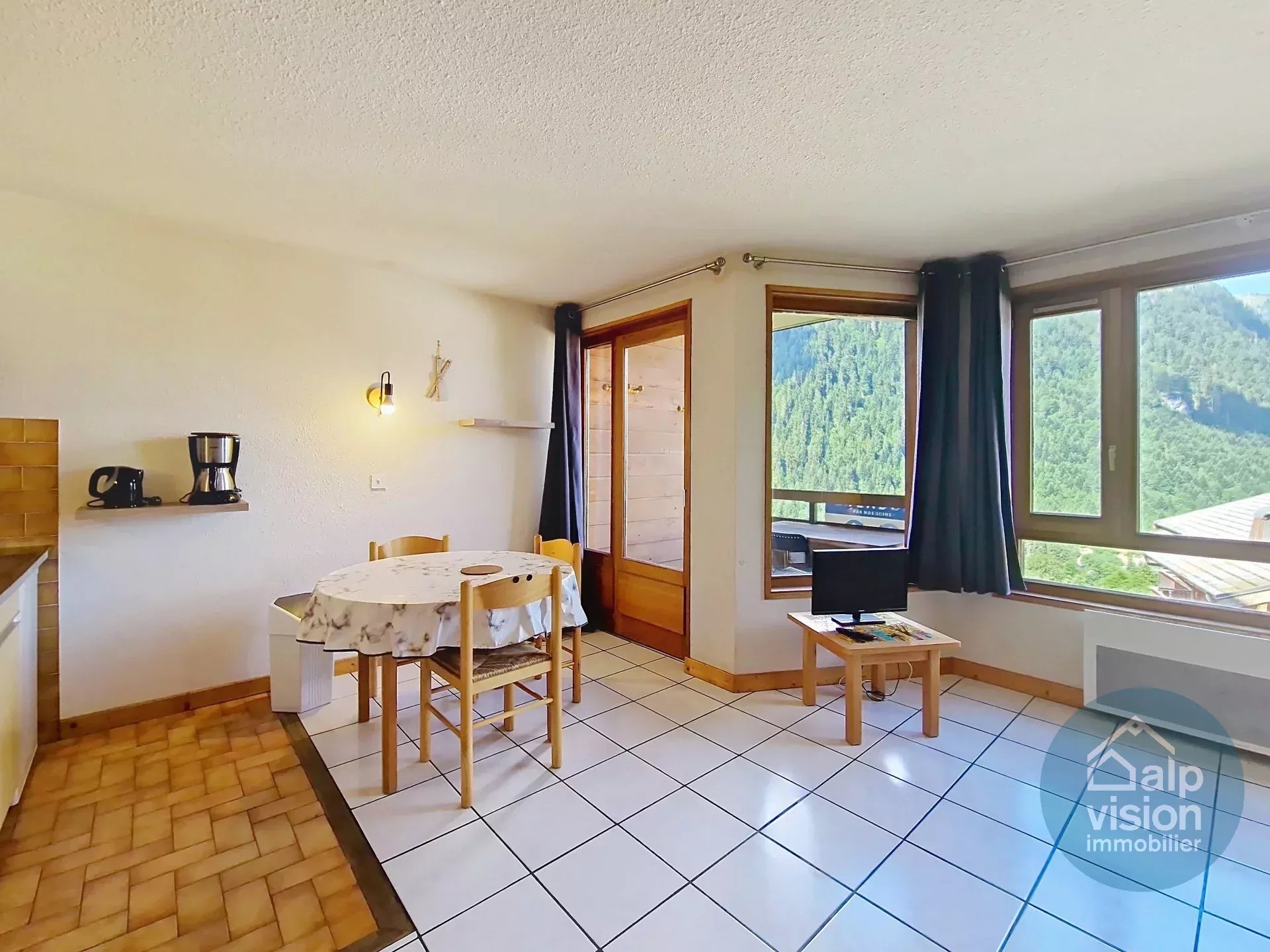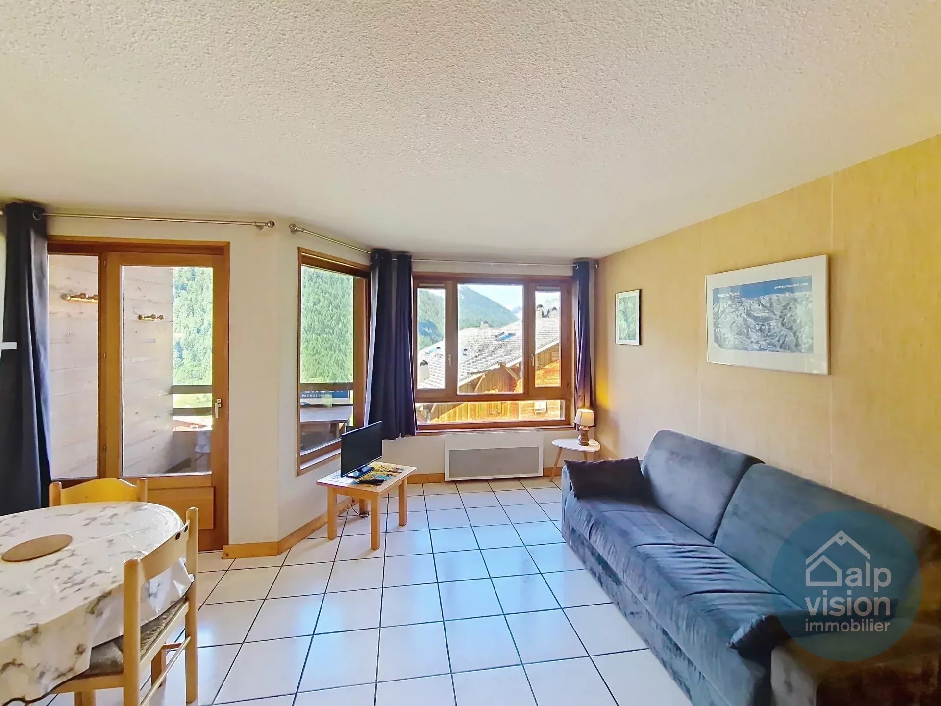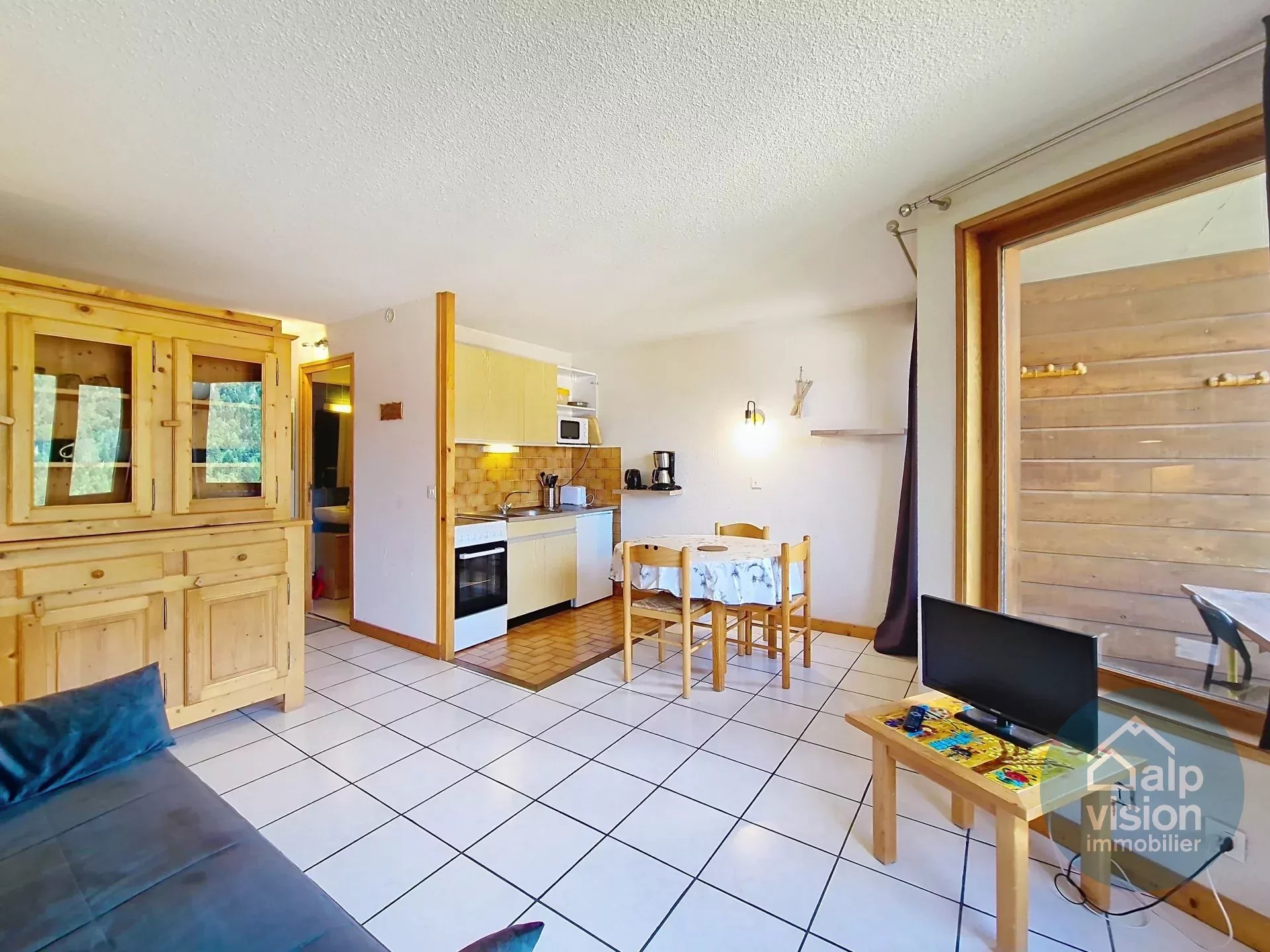 Dans les Alpes françaises, cet appartement de 26,13 m² situé au niveau -1 d'une résidence de style "chalet" (41 lots répartis sur 2 résidences), construite en 1981 avec vue sur la vallée, est à proximité immédiate du centre du village.